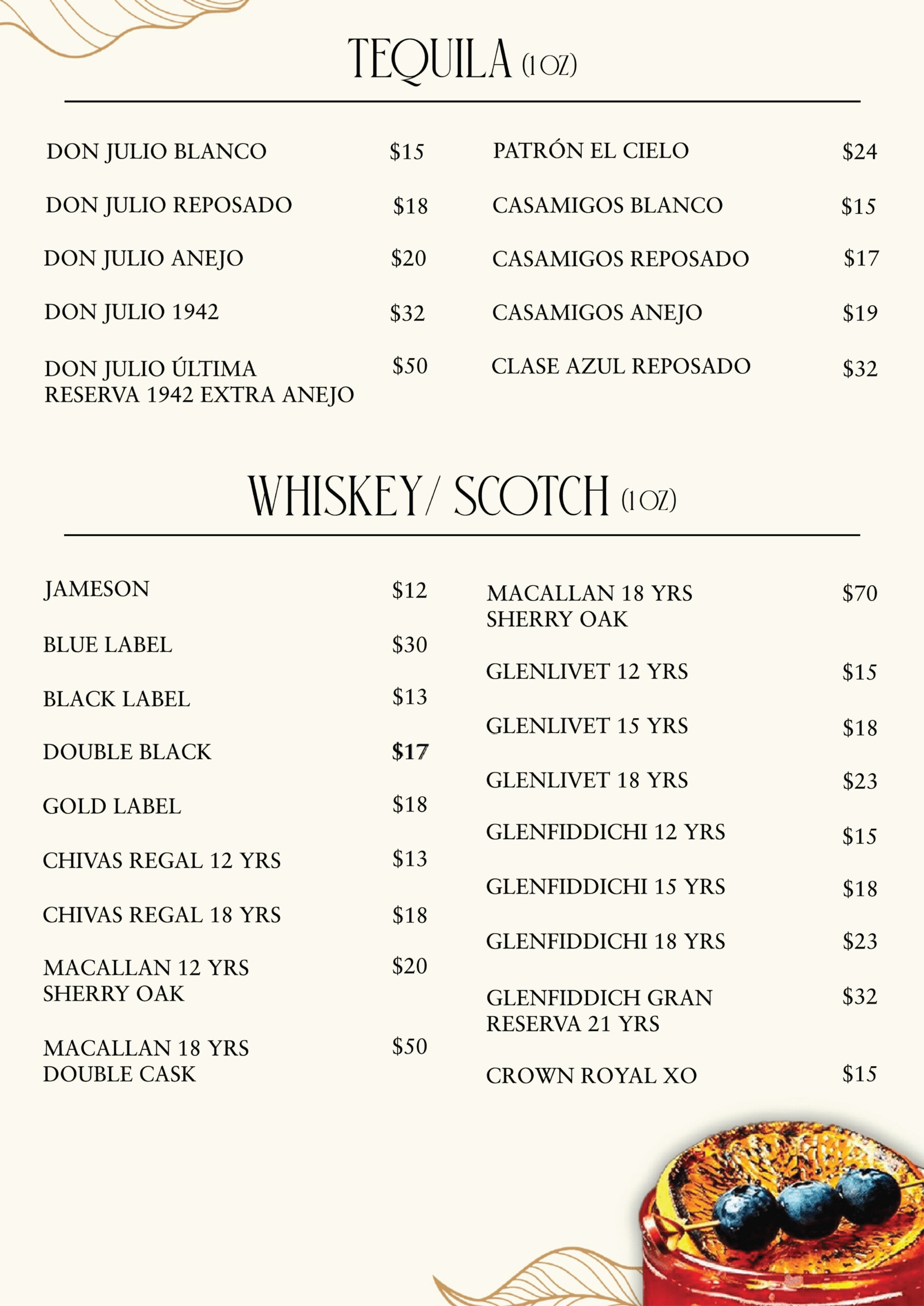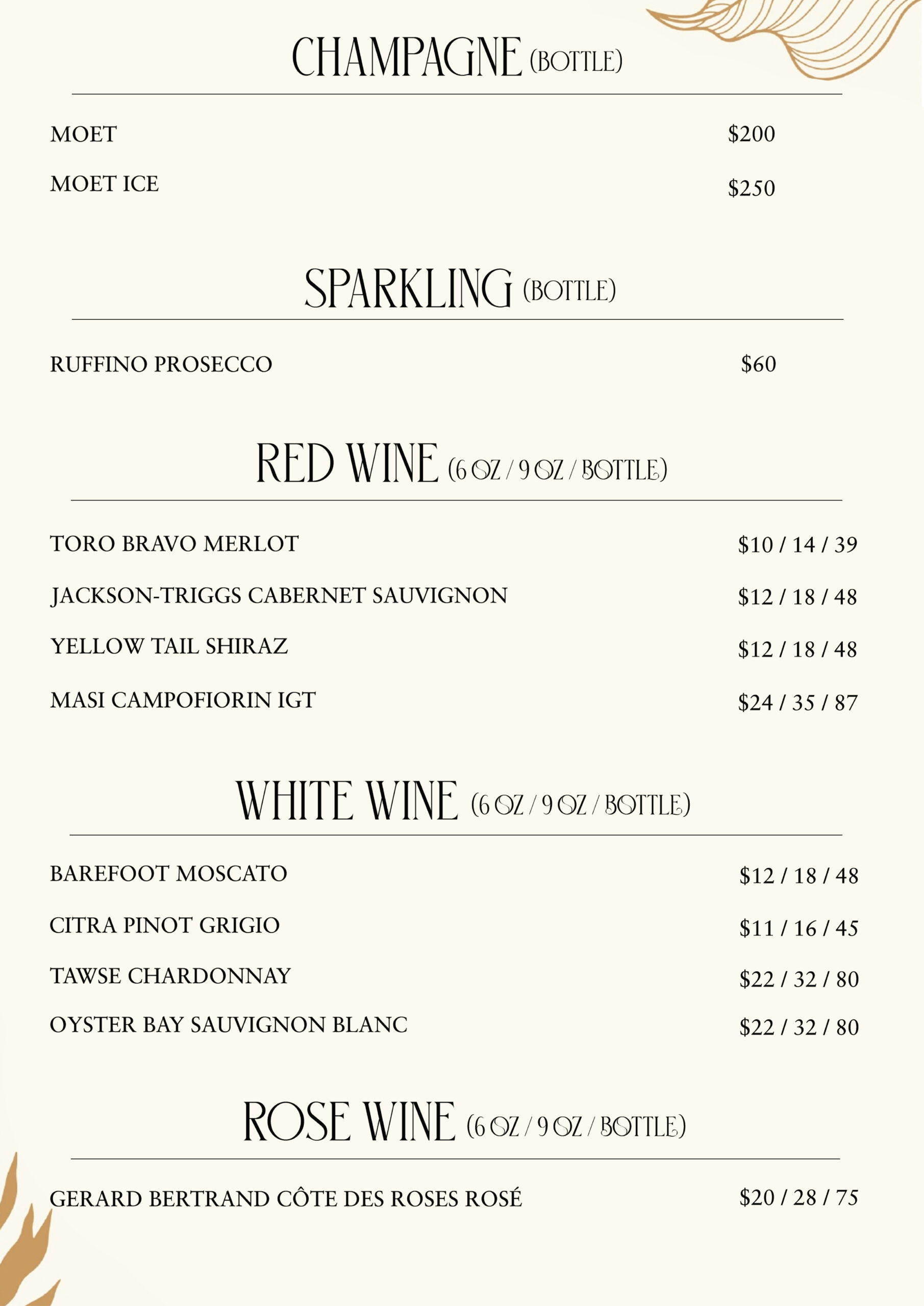 our menu
