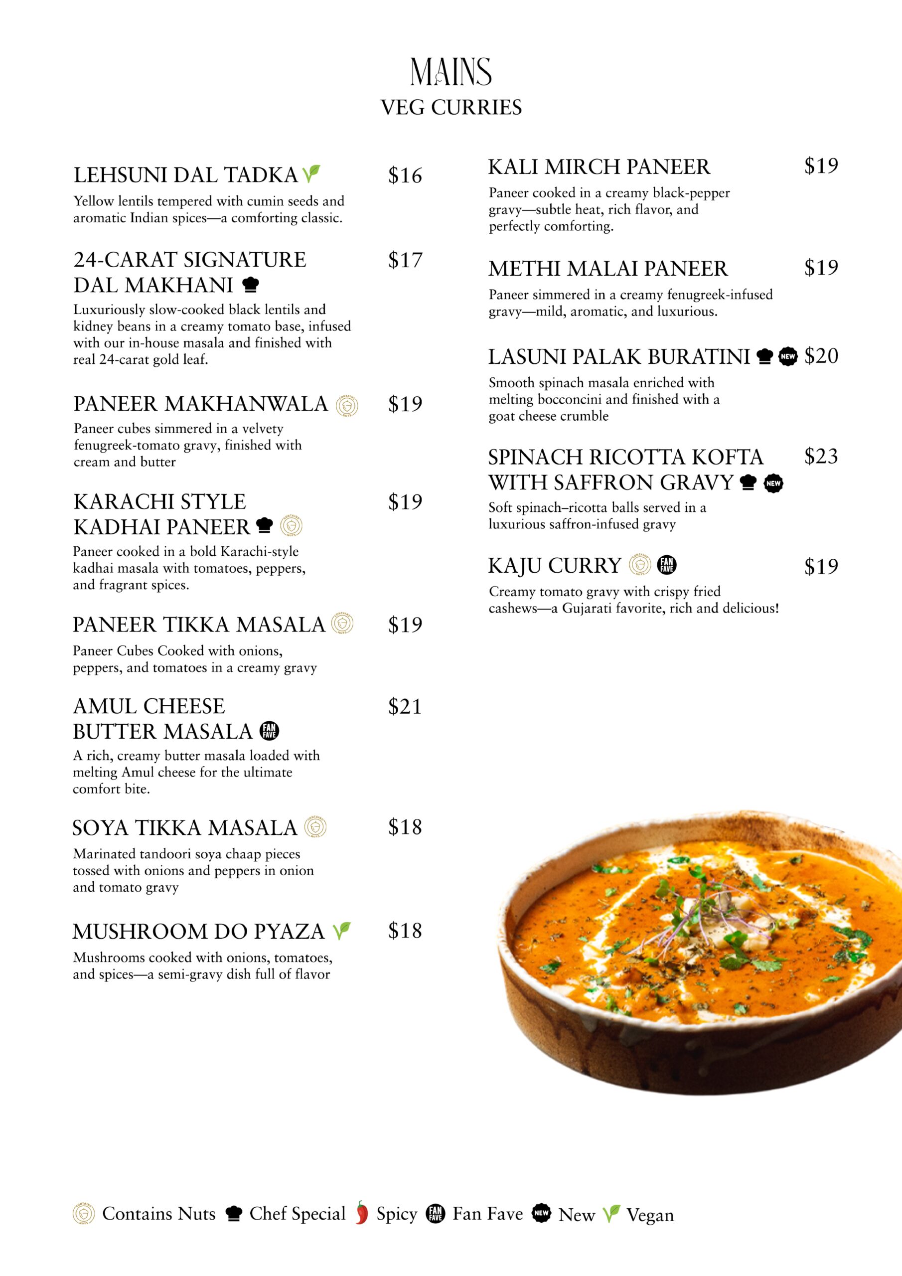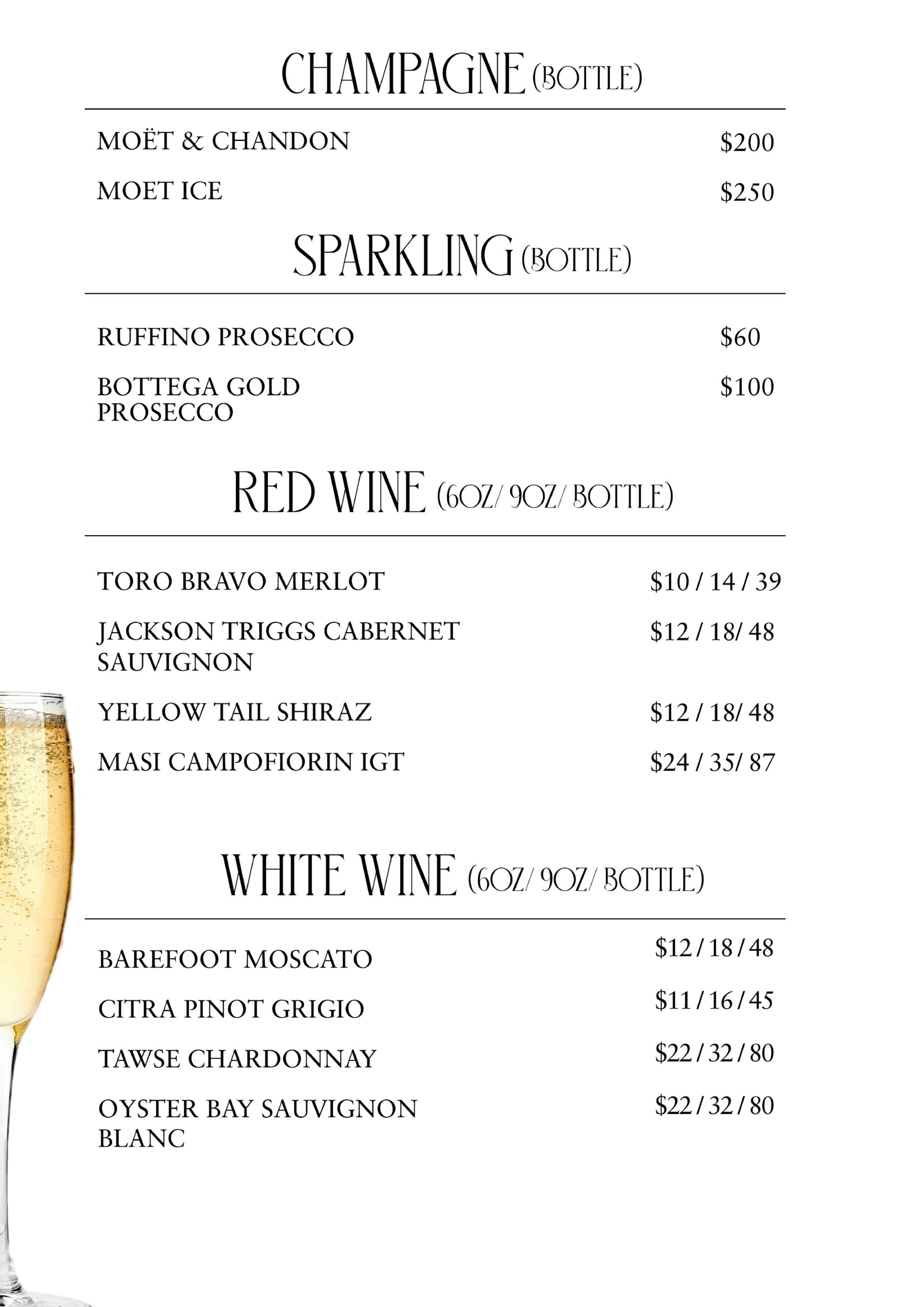 À LA CARTE MENU