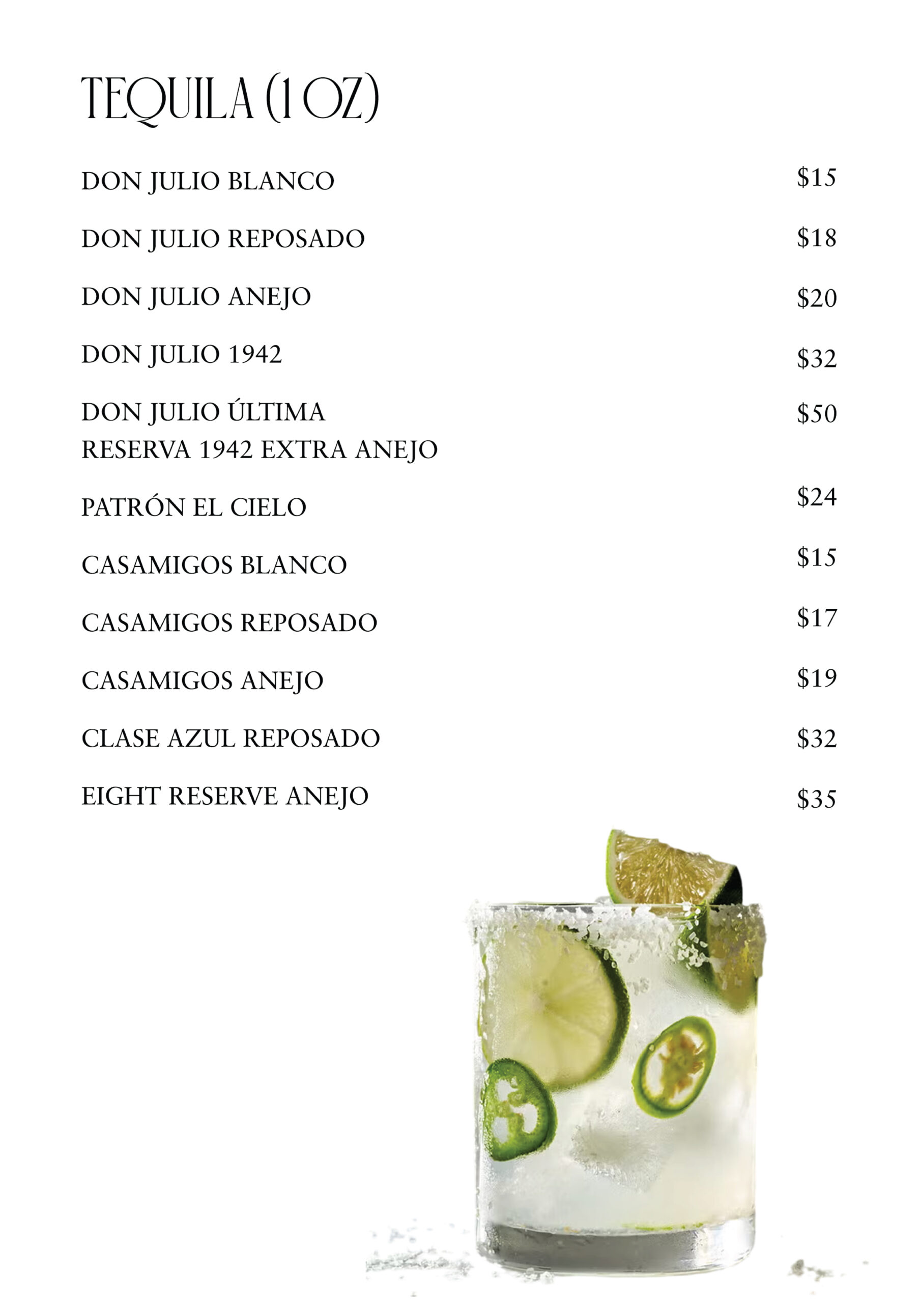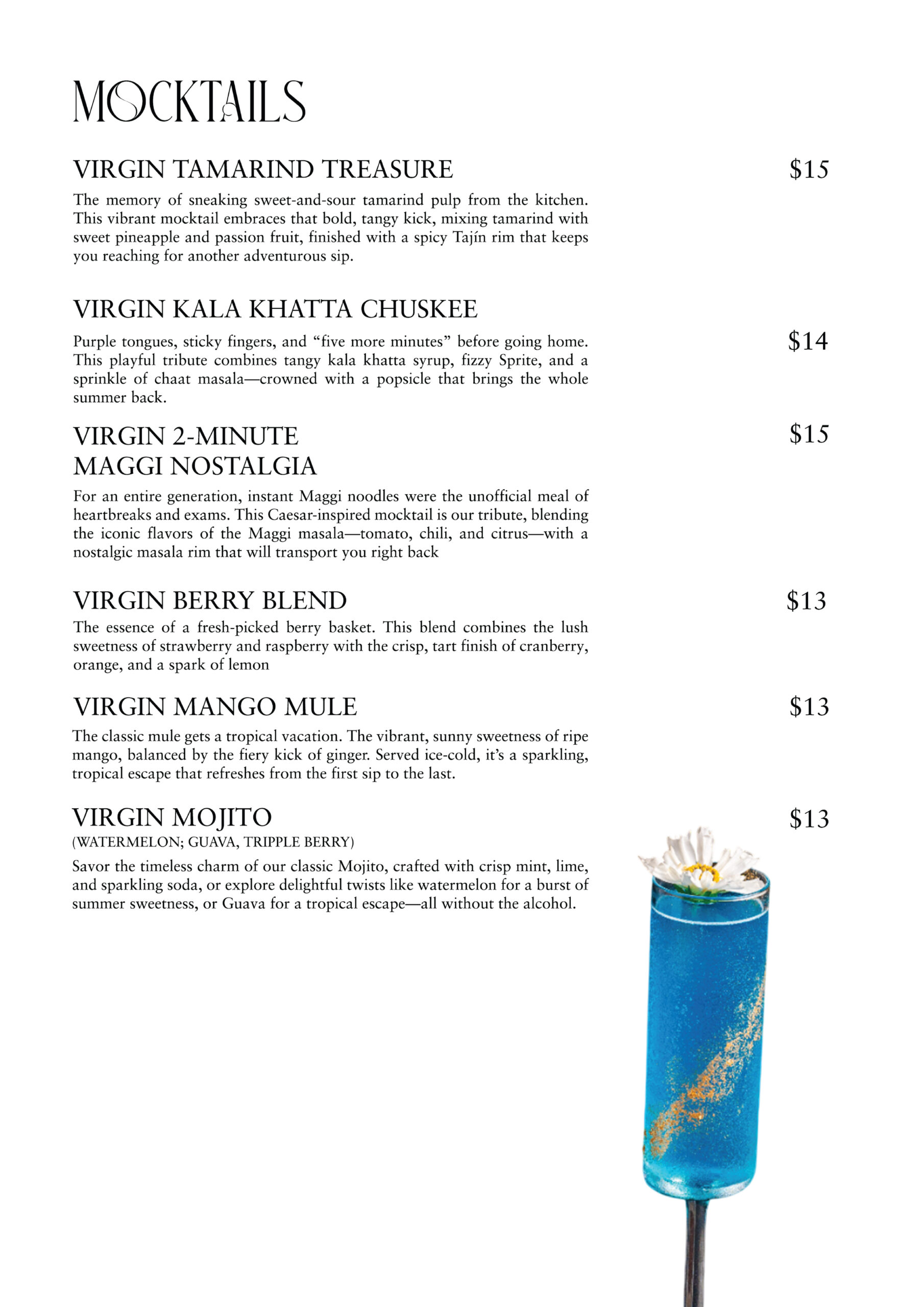 À LA CARTE MENU